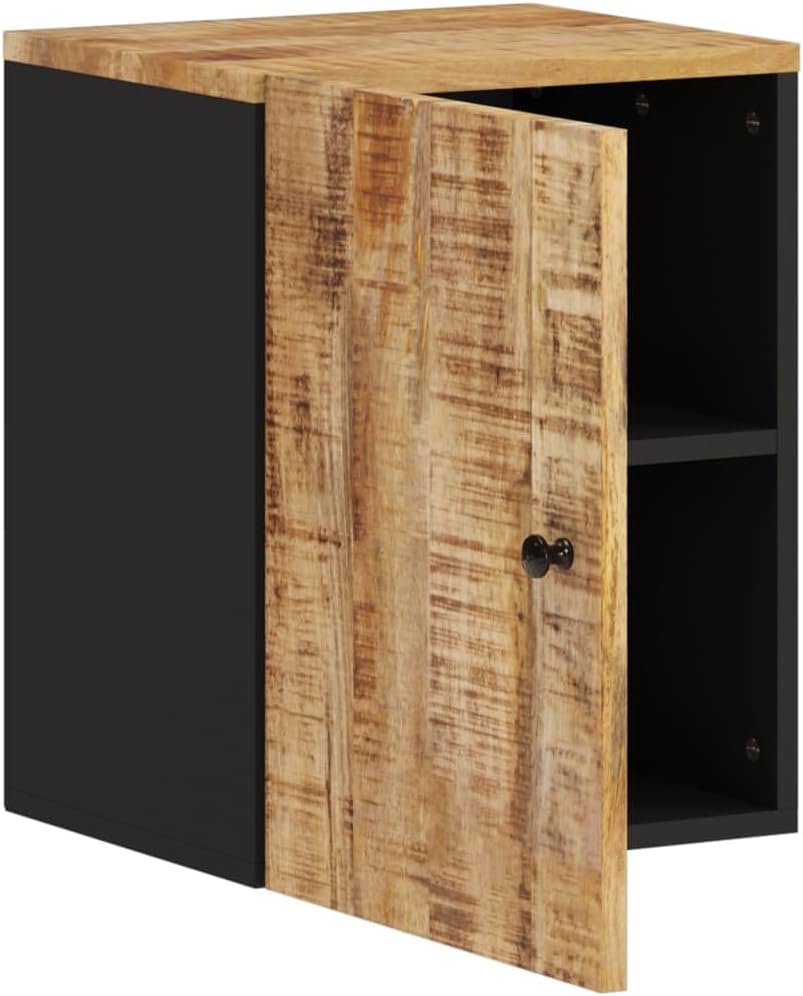 Ample Storage: This cabinet gives plenty of space, fit for all your bathroom bits like toiletries, towels, and cleaners. It’s a lifesaver for keeping things organized and tidy.Wall-Mountable: Its wall-mounted design optimizes floor space, making it perfect for smaller bathrooms. You can easily access your essentials without occupying valuable floor space.Stylish Finish: The natural wood finish highlights unique grains, adding rustic charm while blending perfectly with the matte black frame for a lovely design in your bathroom decor.Flexible Usage: This cabinet works well in various settings, great for storing more than just bathroom items, so it’s a handy addition to any room needing a bit of extra storage.Quality Construction: Built from solid mango wood and engineered wood, this cabinet is built to last, giving you a solid sense of reliability and quality.Color: Brown Shape: RectangularMaterial: Solid Mango woodIndoor/Outdoor: Indoor OnlyNumber of Doors: 1Cover Included: NoRoom: BathroomHeadboard Included: NoMounting Included: Wall / ceiling fixtures - eg specific screws or wall plugs - not includedDimensions: 13.0 x 15.0 x 18.9 in (W x L x H)Surface Height: 0.8 inWeight: 21.65 lbsSwings: NoLadder: NoDelivery Contains: Bathroom wall cabinetAssembly Required: YesRecommended Number of People for Assembly: 1